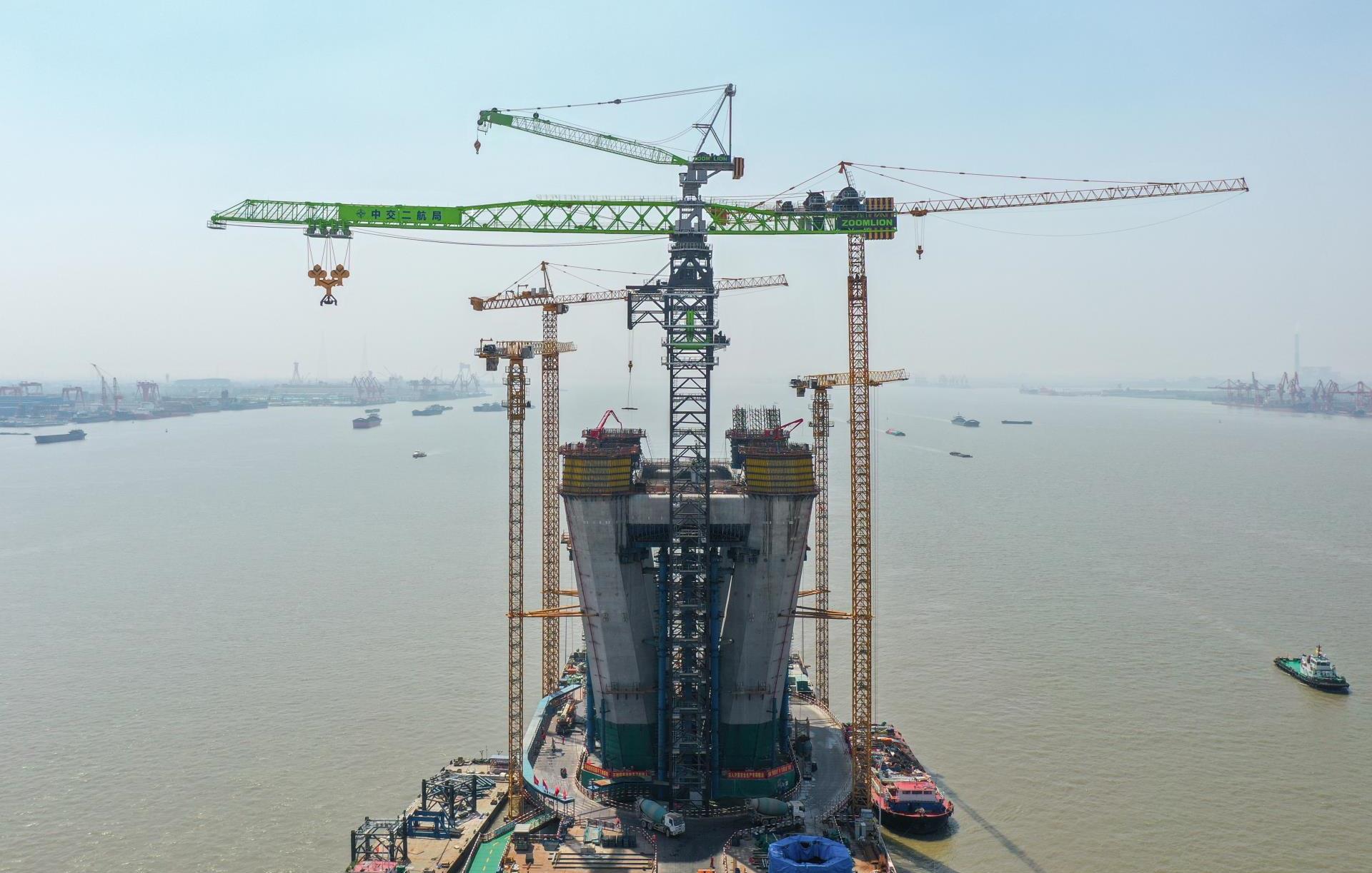 • 震撼!強強聯合,如虎添翼!全球首臺萬噸米級塔機中聯重科W12000-450首秀,助力常泰長江大橋建設。